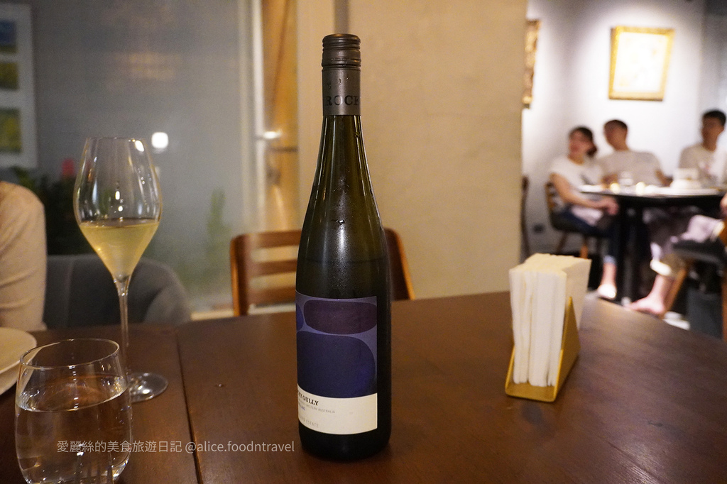 清雅微酸的麗絲玲Riesling白酒,產地源自澳洲。老闆介紹說道,這款葡萄酒的特色是有淡淡的「礦物香氣」