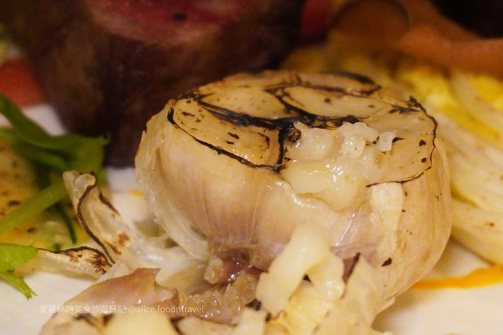 老闆建議牛排配烤大蒜一起吃