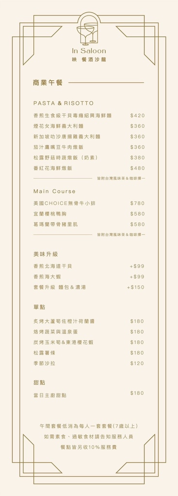 |映餐酒沙龍ln Saloon菜單