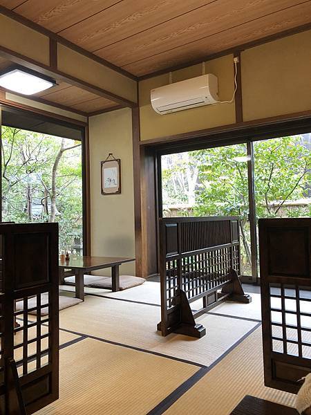 進門後是位穿著和服,舉止優雅的老婆婆接待入座,需要先將鞋子脫下放置在玄關內。走入店內後,裡面的景觀出乎意料,竟然是落地窗!看得到庭院的鬱樹蒼蒼~充滿禪意的園景一覽無遺,超有感覺的。店內的裝潢雖然滿滿的古風,卻不會破舊,保存十分良好,絲毫沒有三百年歷史的感覺。