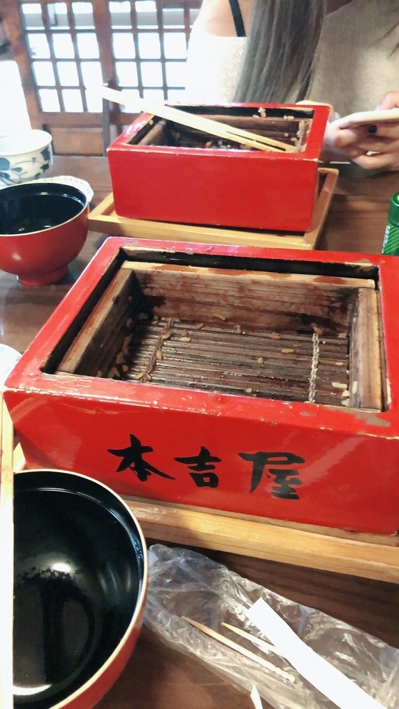 元祖本吉屋號稱是日本第一家推出蒸籠鰻魚飯的餐廳,從1615年(元和元年)到現在已有300多年的歷史,店面仍保留著創立時的外觀,烏黑牆瓦與茅草屋頂,聽說也有150年歷史,店家的位置較為隱密,離柳川市區還有一小段距離,但走路也是走得到的!雖然位置非市區,非用餐時刻還是有不少日本人在裡面用餐,可以說是十分熱門的餐廳呢